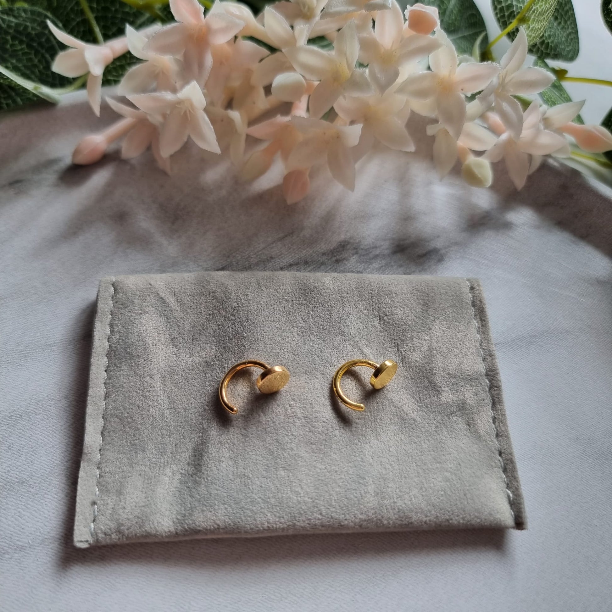 Elevate your style with the Disc Huggie Earrings, featuring sleek, polished discs on classic huggie hoops. Crafted from premium brass and plated with 18k gold, these hypoallergenic earrings offer a durable and luxurious finish. Perfect for any outfit, their minimalist design ensures a chic, versatile look.
